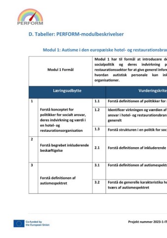 D. Tabeller: PERFORM-modulbeskrivelser