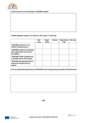 8. Har du afsluttende kommentarer til PERFORM-undervisningsmaterialet og/eller HR-platformen?