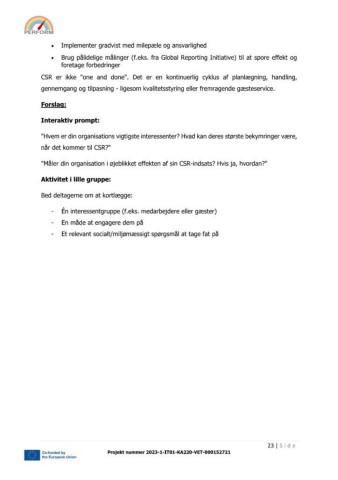 • Brug pålidelige målinger (f.eks. fra Global Reporting Initiative) til at spore effekt og