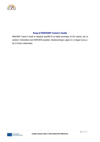 PERFORM Trainer's Guide er designet specifikt til at støtte leveringen af VET planen, der er