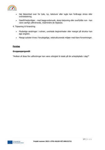 • Mange autister trives i forudsigelige, velstrukturerede miljøer med klare forventninger.