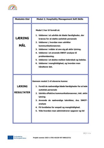 Modulets titel Modul 2: Hospitality Management Soft Skills