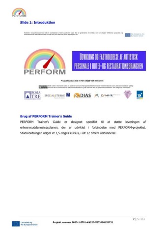 PERFORM Trainer's Guide er designet specifikt til at støtte leveringen af