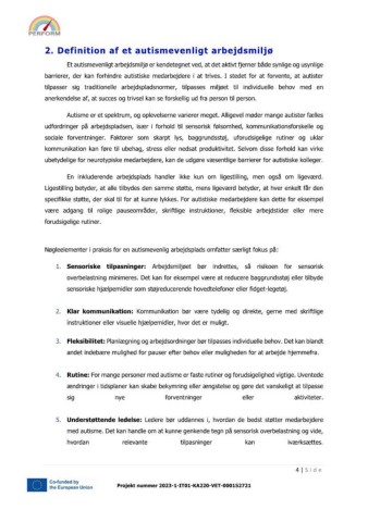 specifikke støtte, der skal til for at kunne lykkes. For autistiske medarbejdere kan dette for eksempel