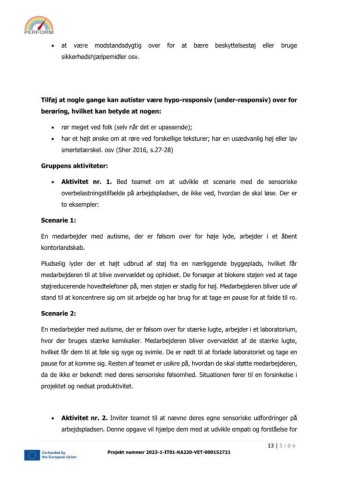 • Aktivitet nr. 1. Bed teamet om at udvikle et scenarie med de sensoriske