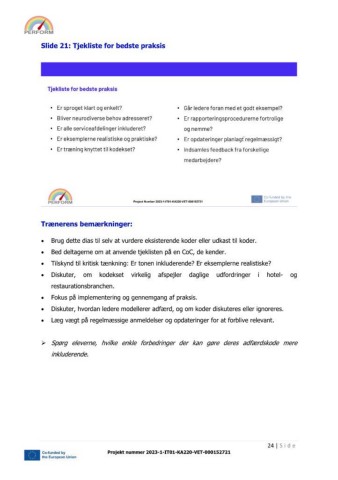 Slide 21: Tjekliste for bedste praksis