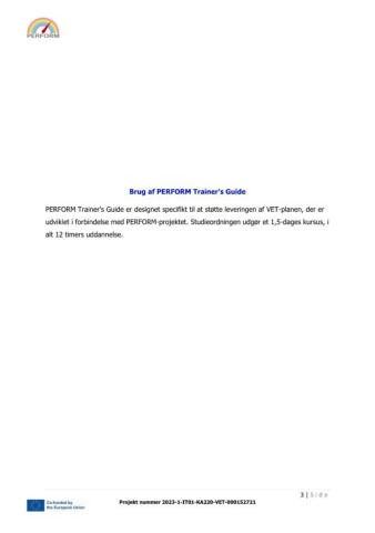 PERFORM Trainer's Guide er designet specifikt til at støtte leveringen af VET-planen, der er