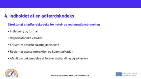 Struktur af et adfærdskodeks for hotel- og restaurationsbranchen