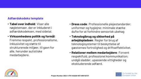 • Tabel over indhold: Viser alle • Dress code: Professionelle plejestandarder;