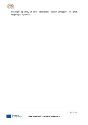 forandringer og sikrer, at deres arbejdspladser afspejler principperne om lighed, mangfoldighed og inklusion. 14 | S i d e Projekt nummer 2023-1-IT01-KA220-VET-000152721
