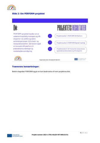 Beskriv begrebet PERFORM og giv en kort beskrivelse af hvert projektresultat.