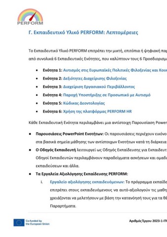 Γ. Εκπαιδευτικό Υλικό PERFORM: Λεπτομέρειες