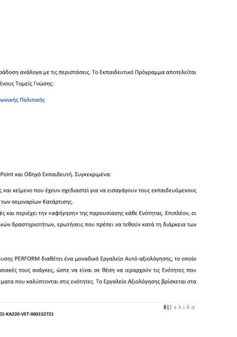 Γ. Εκπαιδευτικό Υλικό PERFORM: Λεπτομέρειες