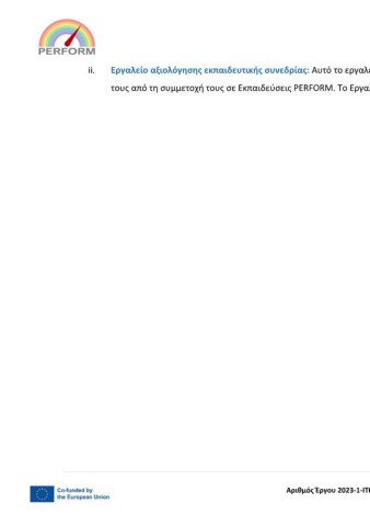 τους από τη συμμετοχή τους σε Εκπαιδεύσεις PERFORM. Το Εργαλείο Αξιολόγησης βρίσκεται στα Παραρτήματα.