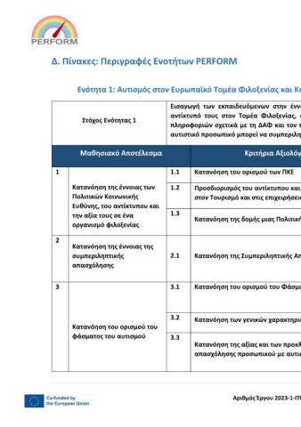 Δ. Πίνακες: Περιγραφές Ενοτήτων PERFORM