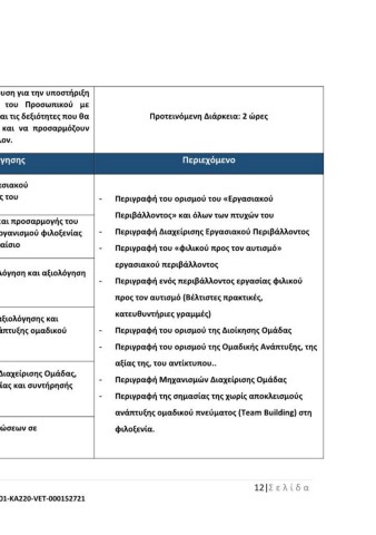 1 φιλικού προς τον αυτισμό 1.2 εργασιακού περιβάλλοντος ενός οργανισμού φιλοξενίας Περιγραφή Διαχείρισης Εργασιακού Περιβάλλοντος