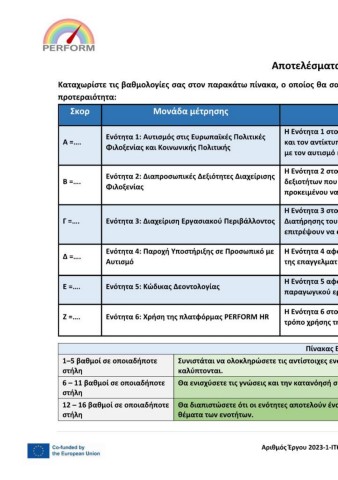 Καταχωρίστε τις βαθμολογίες σας στον παρακάτω πίνακα, ο οποίος θα σας βοηθήσει να προσδιορίσετε ποιες Ενότητες PERFORM πρέπει να δώσετε