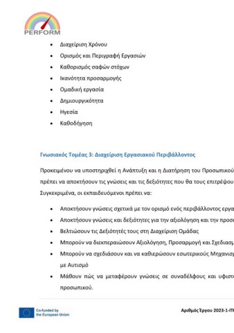 Γνωσιακός Τομέας 3: Διαχείριση Εργασιακού Περιβάλλοντος