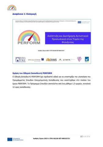 Ο Οδηγός Εκπαιδευτή PERFORM έχει σχεδιαστεί ειδικά για να υποστηρίξει την υλοποίηση του