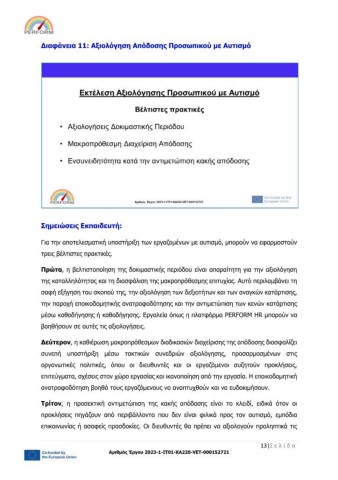 Διαφάνεια 11: Αξιολόγηση Απόδοσης Προσωπικού με Αυτισμό