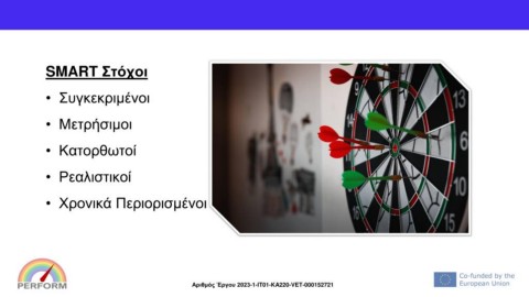 SMART Στόχοι • Συγκεκριμένοι • Μετρήσιμοι • Κατορθωτοί • Ρεαλιστικοί • Χρονικά Περιορισμένοι Αριθμός Έργου 2023-1-IT01-KA220-VET-000152721