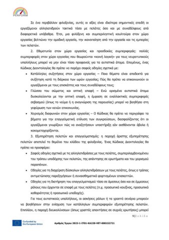 Κώδικας Δεοντολογίας θα πρέπει να παρέχει σαφείς οδηγίες σχετικά με: