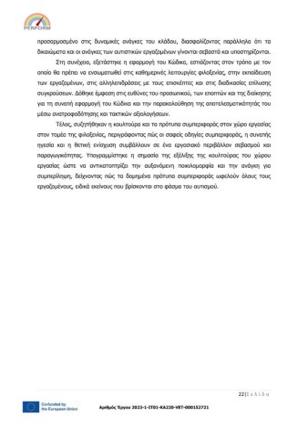 Τέλος, συζητήθηκαν η κουλτούρα και τα πρότυπα συμπεριφοράς στον χώρο εργασίας