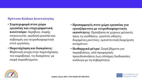 σεβασμός για νευροδιαφορετικά δομημένες ρουτίνες· εμπιστευτική διαχείριση
