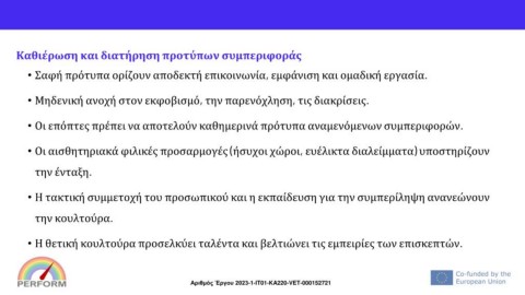 • Οι επόπτες πρέπει να αποτελούν καθημερινά πρότυπα αναμενόμενων συμπεριφορών.