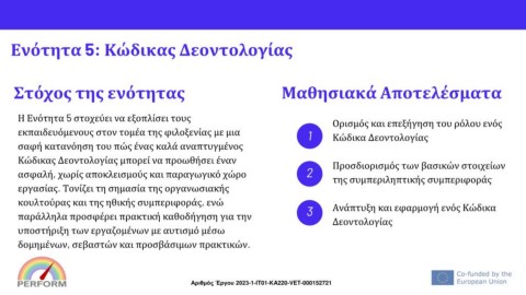 Η Ενότητα 5 στοχεύει να εξοπλίσει τους Ορισμός και επεξήγηση του ρόλου ενός