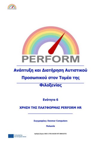 Ανάπτυξη και Διατήρηση Αυτιστικού Προσωπικού στον Τομέα της Φιλοξενίας Ενότητα 6 ΧΡΗΣΗ ΤΗΣ ΠΛΑΤΦΟΡΜΑΣ PERFORM HR Συγγραφέας: Danmar Computers Πολωνία Αριθμός Έργου 2023-1-IT01-KA220-VET-000152721