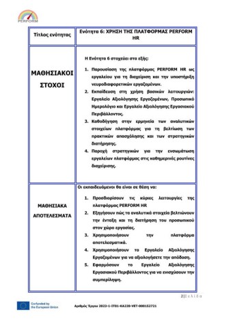ΜΑΘΗΣΙΑΚΑ πλατφόρμας PERFORM HR