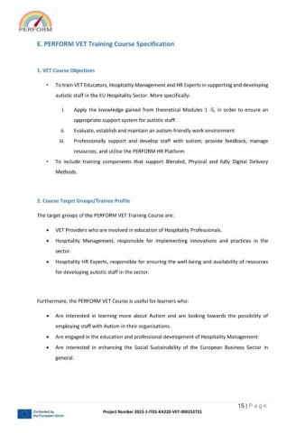 Furthermore, the PERFORM VET Course is useful for learners who: