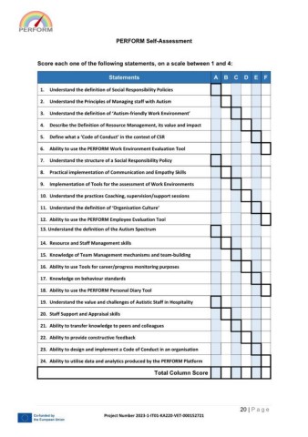 6. Ability to use the PERFORM Work Environment Evaluation Tool