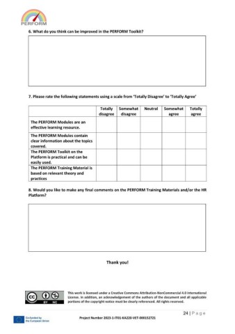 8. Would you like to make any final comments on the PERFORM Training Materials and/or the HR