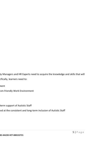• Gain knowledge and skills for the evaluation and adaptation of an Autism-friendly Work Environment