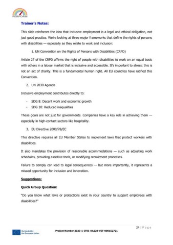 This slide reinforces the idea that inclusive employment is a legal and ethical obligation, not