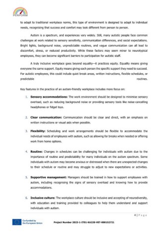 1. Sensory accommodations: The work environment should be designed to minimise sensory