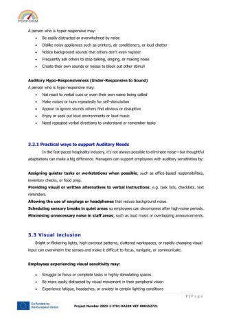 adaptations can make a big difference. Managers can support employees with auditory sensitivities by: