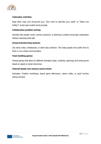 Examples: Creative workshops, board game afternoons, nature walks, or quiet lunches