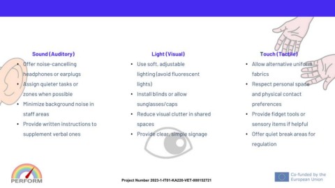 supplement verbal ones • Provide clear, simple signage • Offer quiet break areas for
