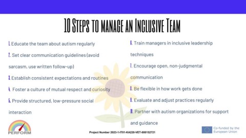 1. Educate the team about autism regularly 6. Train managers in inclusive leadership