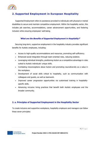 2. a. Principles of Supported Employment in the Hospitality Sector