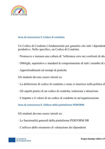 Area di conoscenza 6: Utilizzo della piattaforma PERFORM