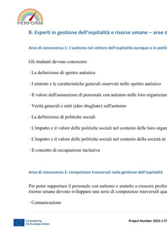 B. Esperti in gestione dell’ospitalità e risorse umane – aree di competenza