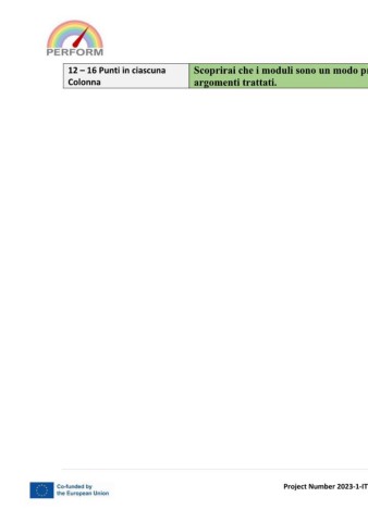 12 – 16 Punti in ciascuna   Scoprirai che i moduli sono un modo pratico per rinfrescare le tue conoscenze e la tua comprensione degli