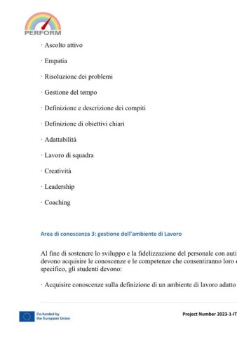 Area di conoscenza 3: gestione dell’ambiente di Lavoro