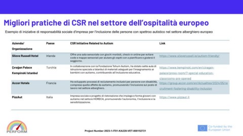 Esempio di iniziative di responsabilità sociale d'impresa per l'inclusione delle persone con spettroo autistico nel settore alberghiero europeo