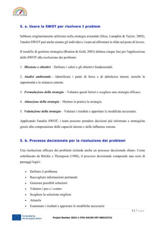 5. a. Usare la SWOT per risolvere I problem