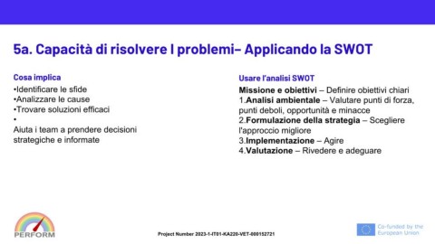 5a. Capacità di risolvere I problemi– Applicando la SWOT